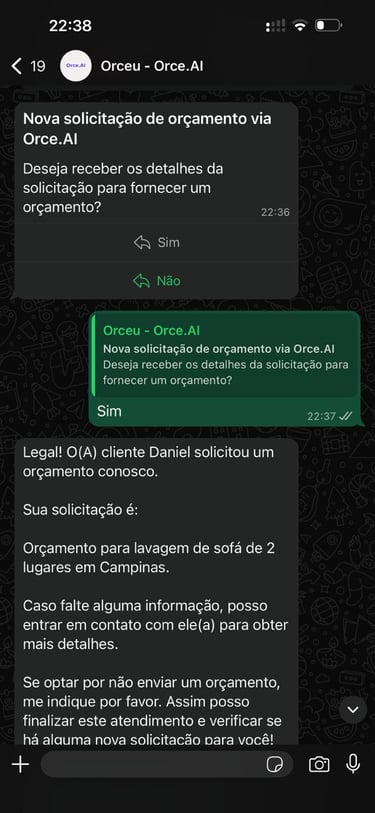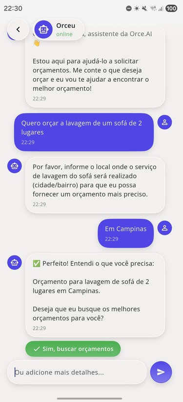 Conectamos você aos melhores fornecedores automaticamente. Descreva o que precisa e deixe nossa IA fazer o trabalho presado por você. Orce.AI, é grátis: