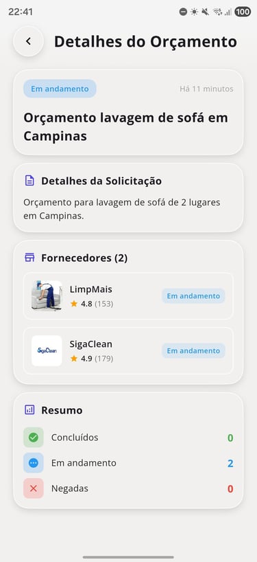 Sim! 100% gratuito para clientes. Você não paga nada para usar o app, receber orçamentos ou comparar fornecedores. Você só paga diretamente ao fornecedor que escolher.